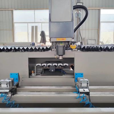 3軸アルミニウム加工センター for window door and curtain wall with 6 tool magazines designed for drilling and milling operations on aluminium profiles. アルミニウムのプロファイルの掘削と磨き作業のために設計された6つのツールマガジンと窓ドアとカーテンウォールのための3軸アルミニウム加工センター.建設に使用されたソリューションによって24,000 ターン / 分,この3軸は,複雑な穴の加工,自動ツール変更,自動位置付け,時間の節約に適しています.9kWモータースピンドルは,大量のチップを削除し,高速加工を行うことができます.